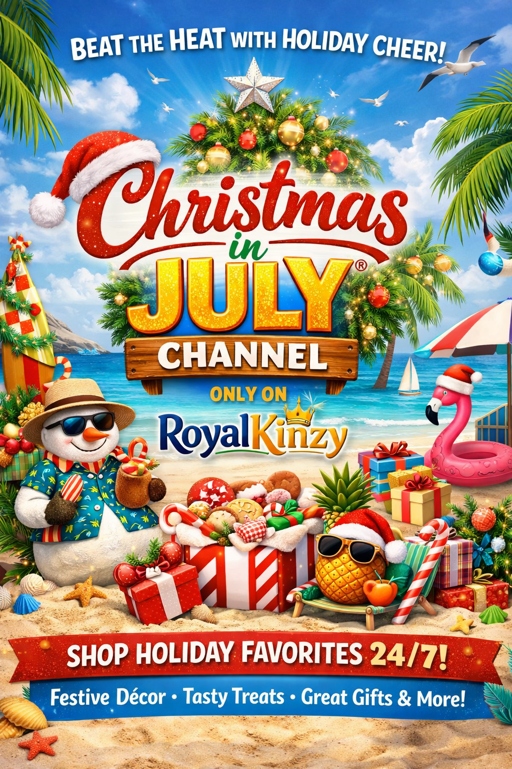 Beat the heat with an extra dose of holiday cheer with the Christmas in July® Channel, only on RoyalKinzy. Shop holiday favorites 24/7 and enjoy festive décor, tasty treats, great gifts, and more for this season and beyond.