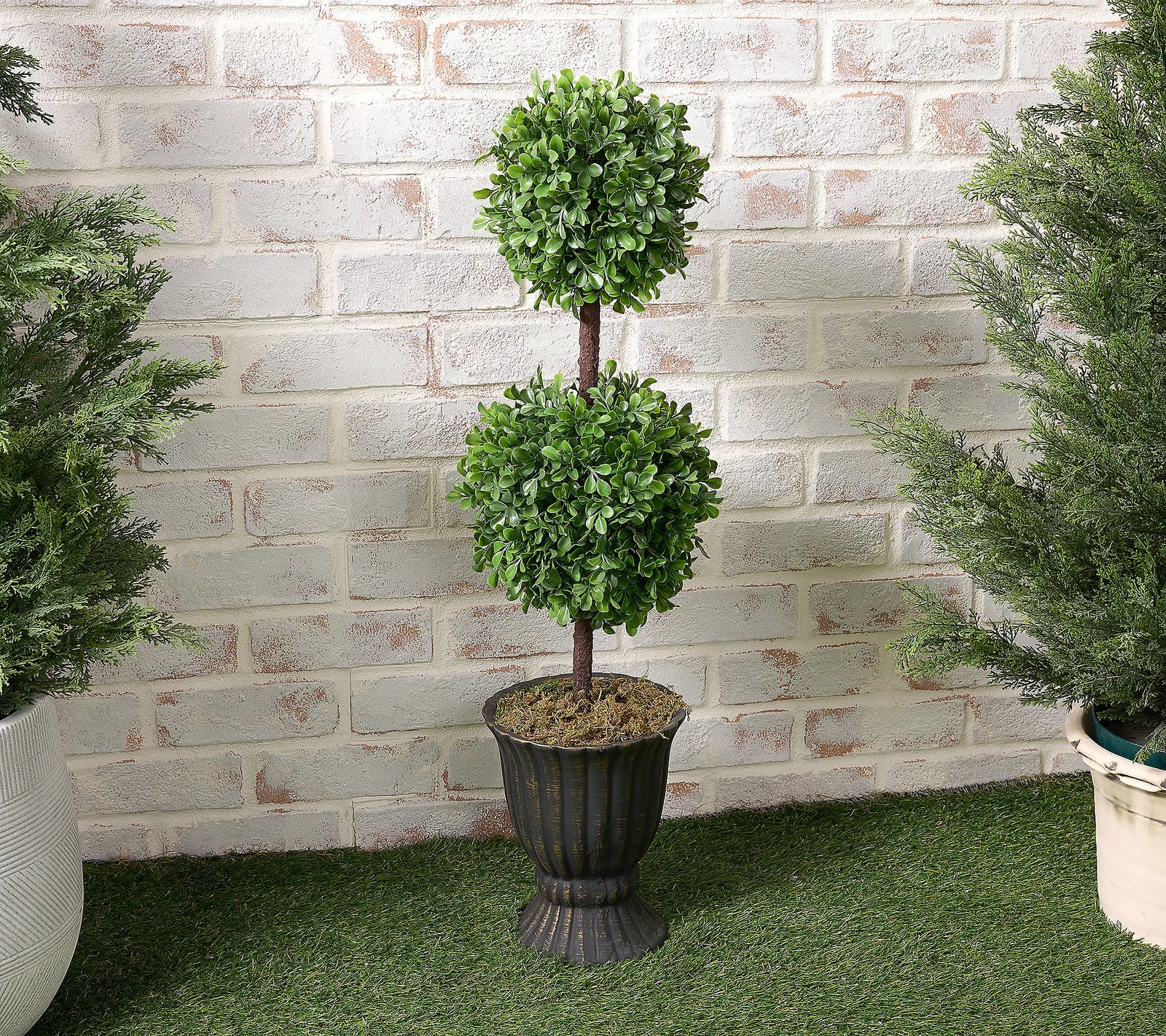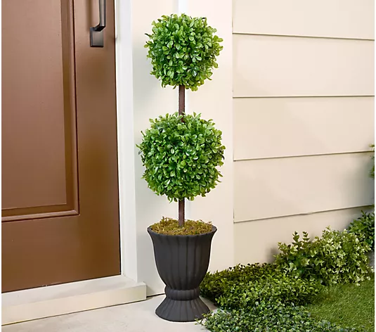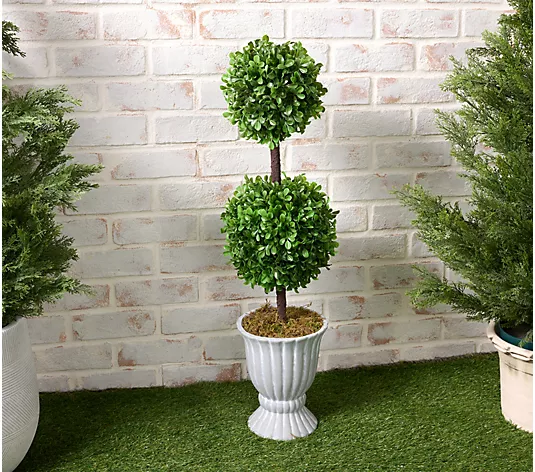 Garden Reflections 32″ 2-tier Faux Boxwood Topiary in Urn