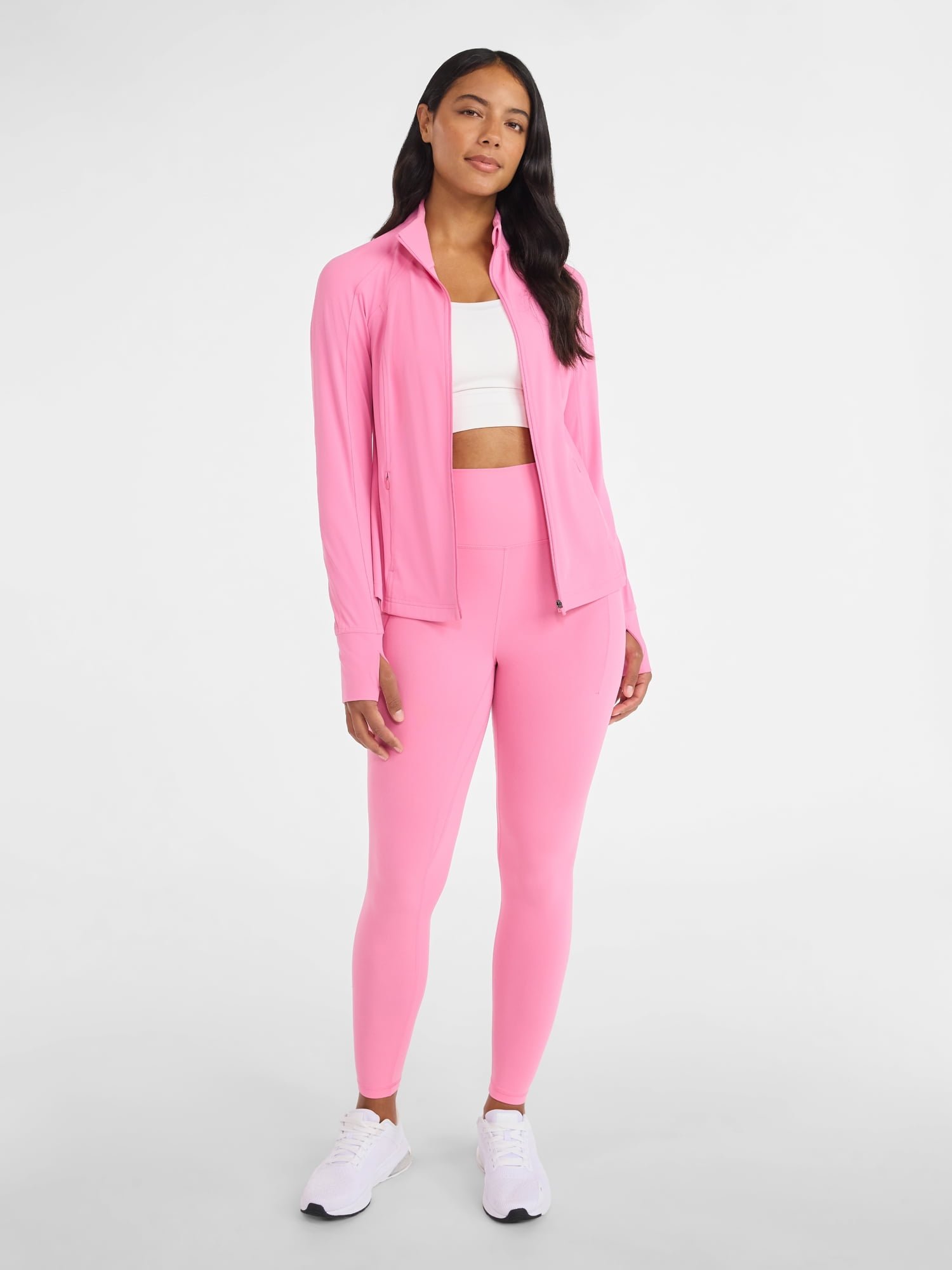 Avia’s SoftSculpt Jacket, designed for the modern-day warrior who slays both in and out of the gym. Crafted in our ultra-soft SoftSculpt fabric with moisture-wicking properties for optimal comfort and performance, this jacket is your new best friend for workouts and beyond. With its zip front and two zip pockets—perfect for stashing your essentials while you conquer the world, it’s as practical as it is stylish. Only at Walmart.