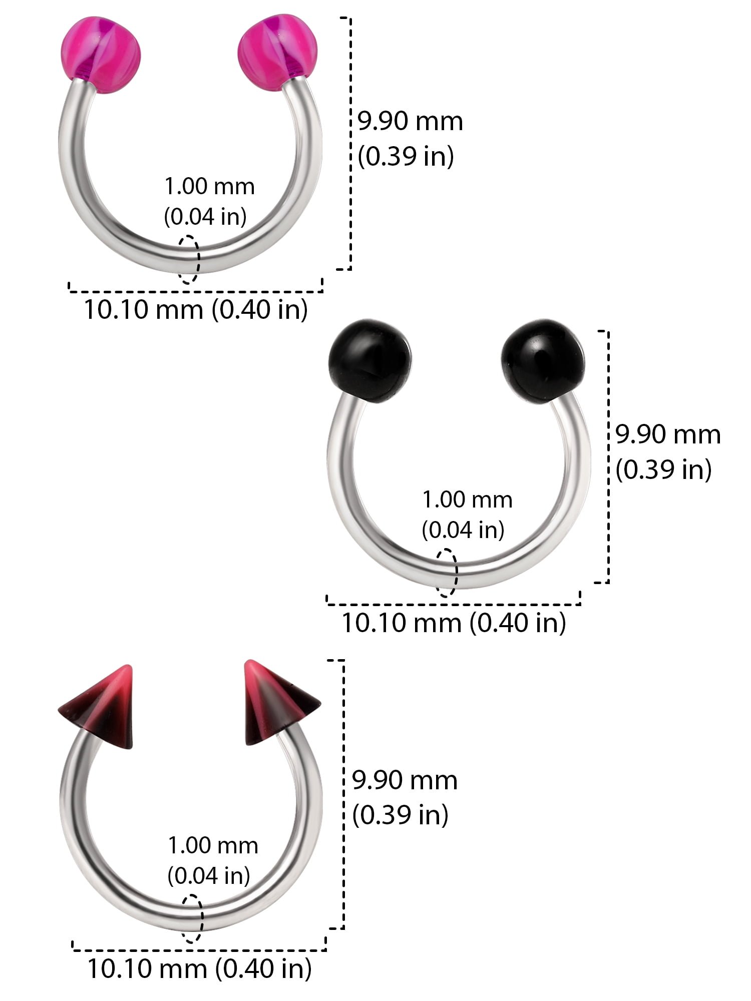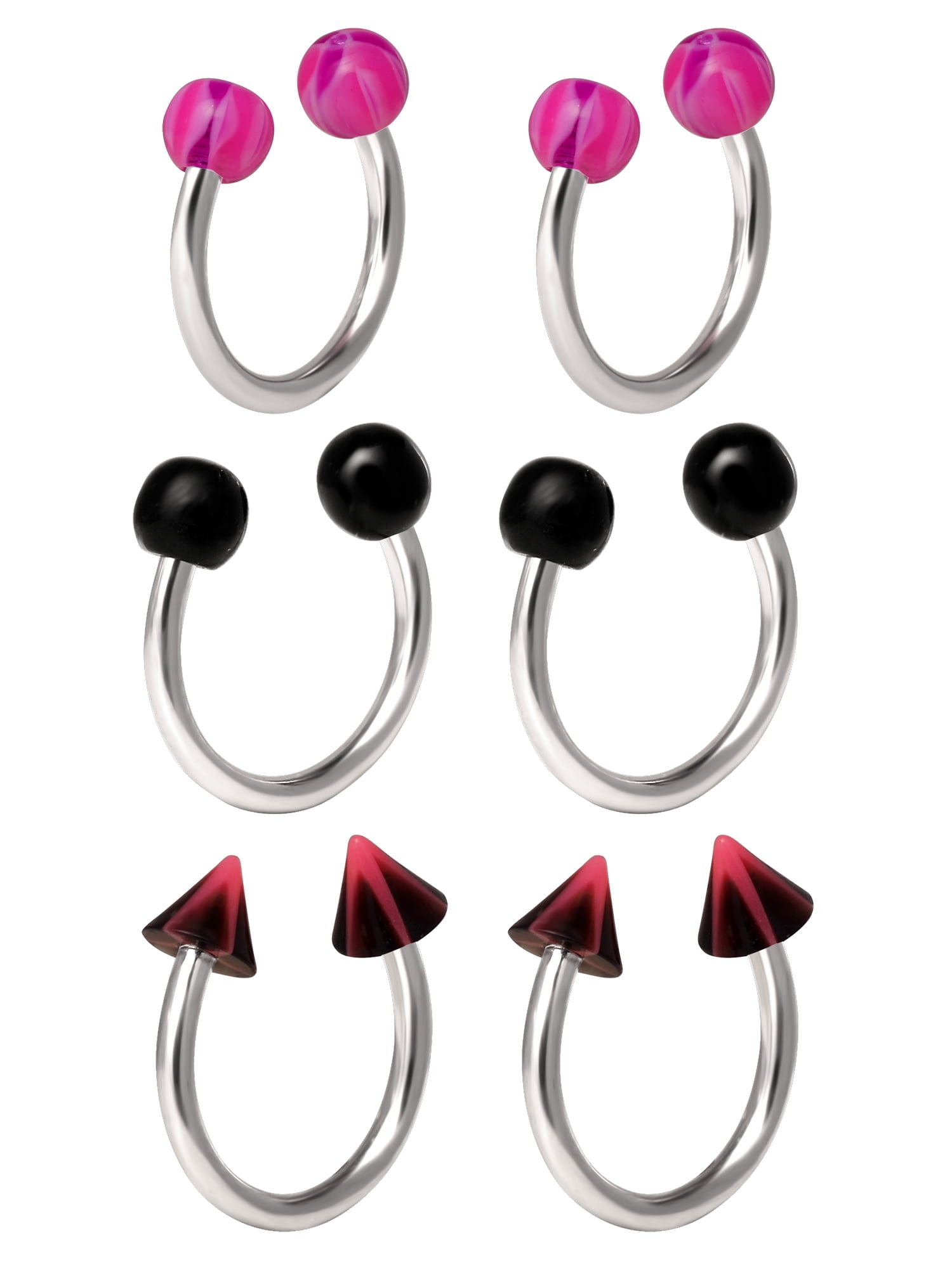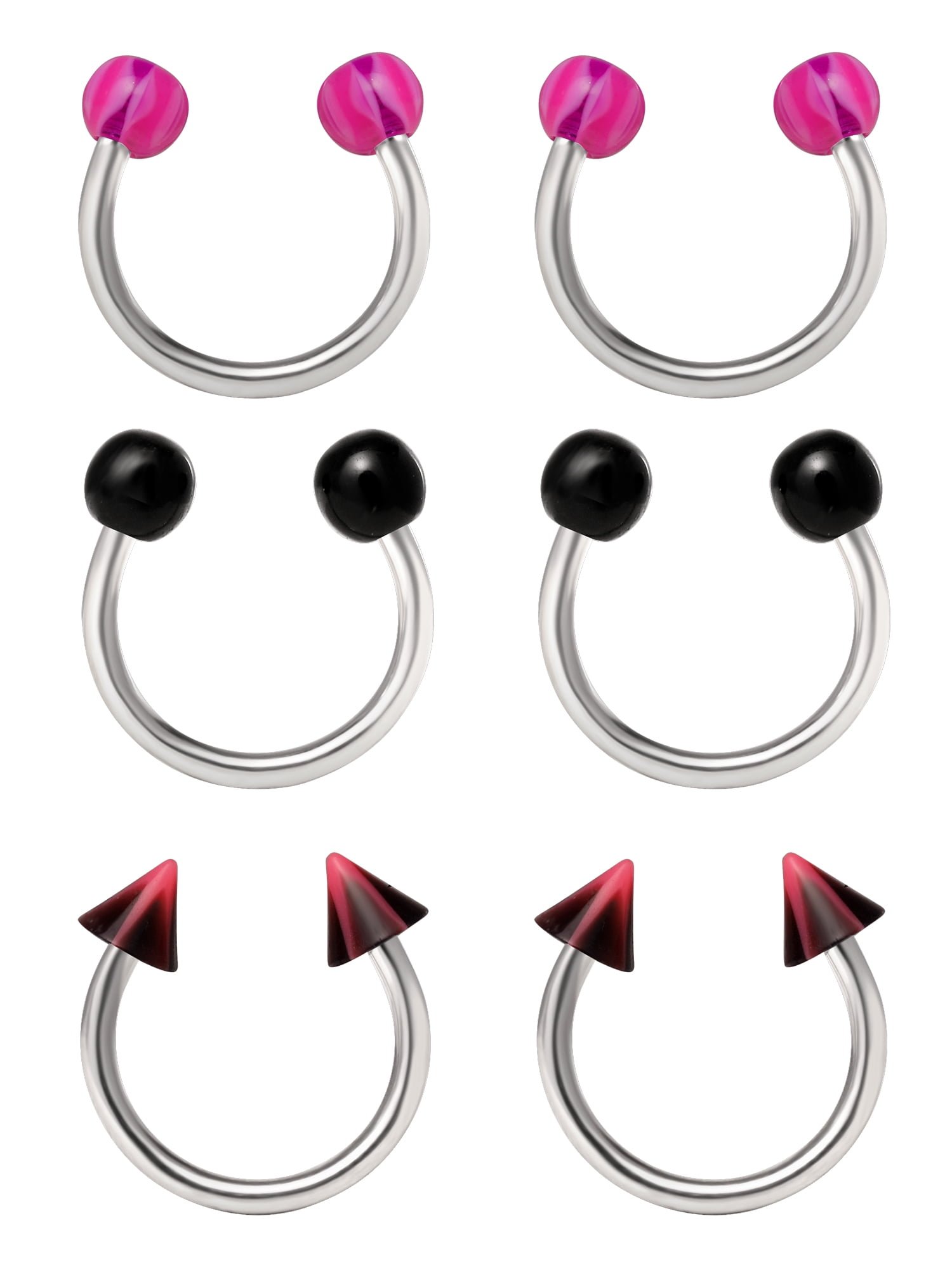 The Body Jewelry Women’s 18G Multi-Color Horseshoe Cartilage 6-Pack is a fun and flexible set for women ages 16 and up who love to mix up their look. This pack includes six stainless steel horseshoe rings in different colors, perfect for cartilage, helix, tragus, septum, or lip piercings. You can switch styles to match your mood or outfit. Made from high-quality stainless steel, each piece is lightweight, durable, and safe for sensitive skin. The 18-gauge size is great for healed piercings and offers a secure, comfortable fit. These rings are also easy to clean and resist rust and tarnish, making them perfect for everyday wear. This multi-pack is a great choice if you want more color options, or if you’re looking for a stylish and affordable gift.