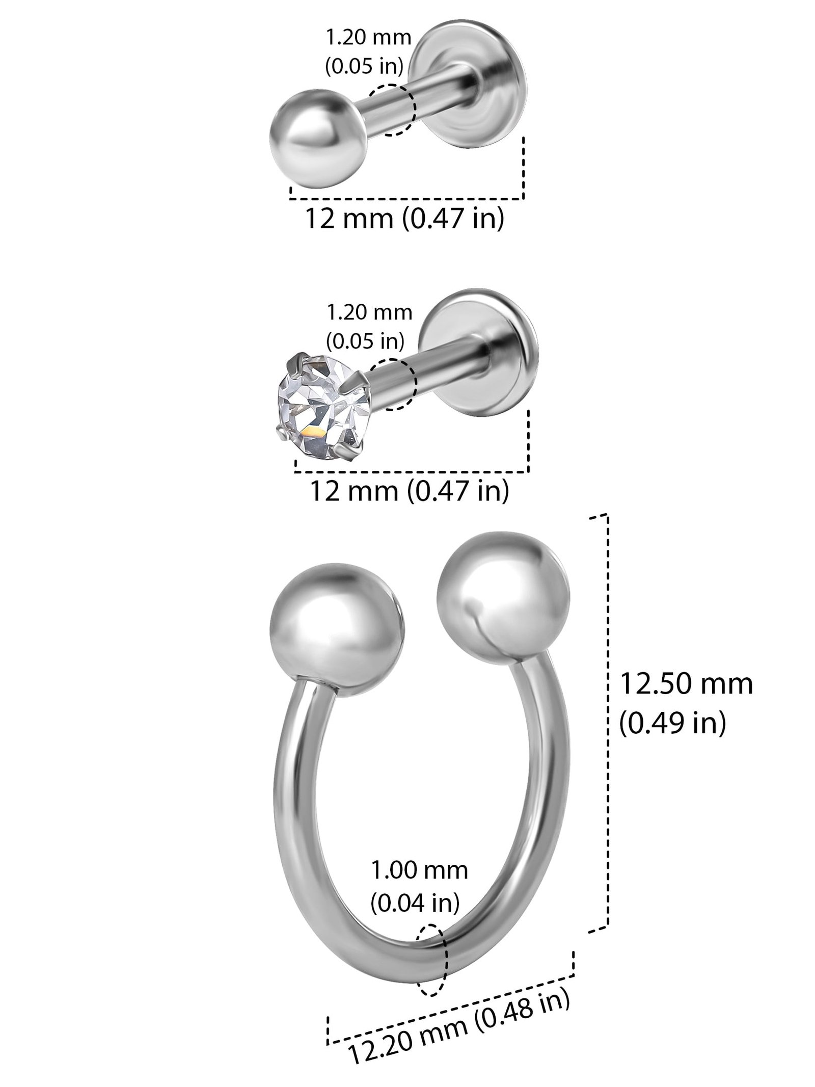 - 16 Gauge Size: Ideal for Monroe, labret, lip, and cartilage piercings.