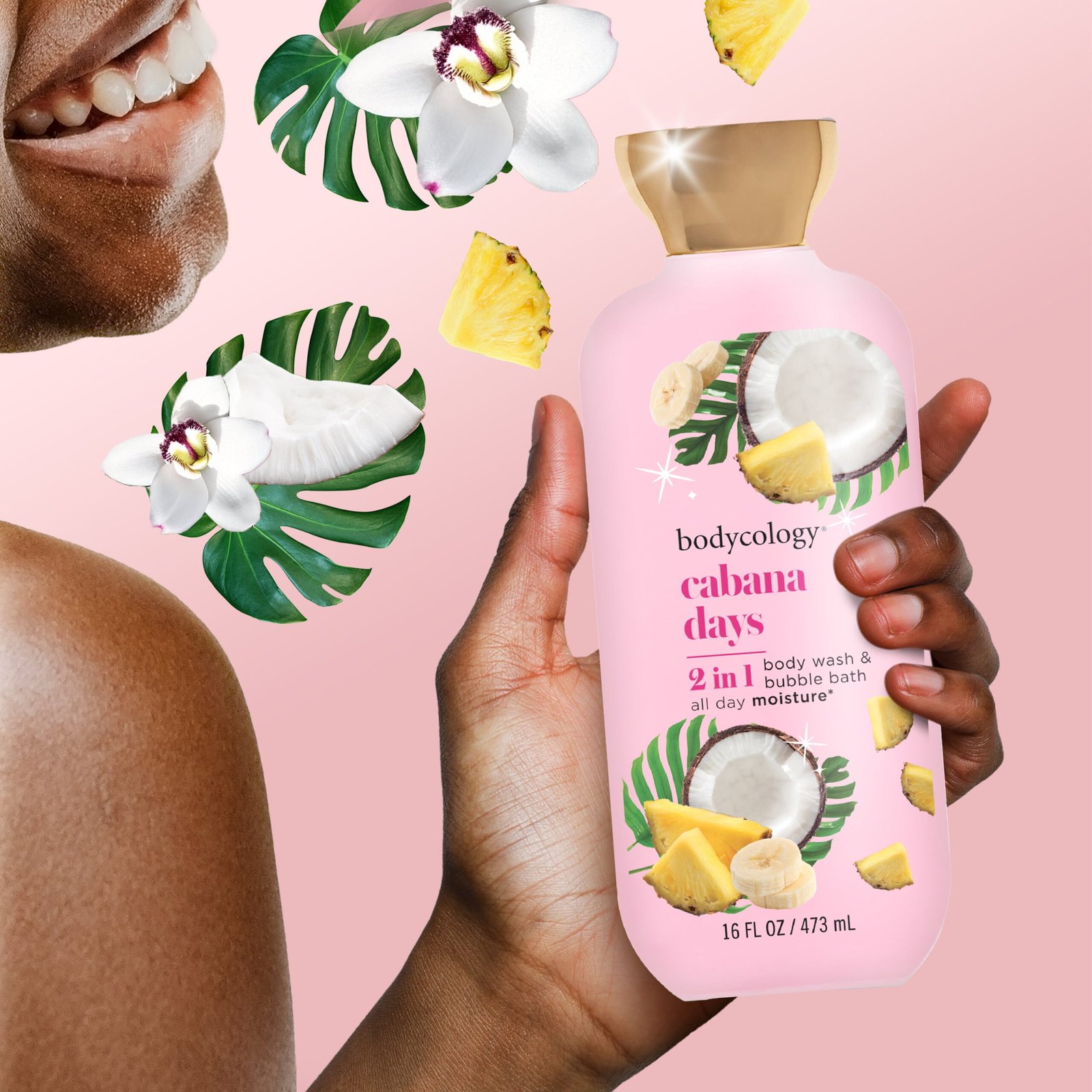 - ESCAPE TO PARADISE: Bodycology Cabana Days 2-in-1 Body Wash and Bubble Bath cleanses while immersing you in a tropical beach escape
