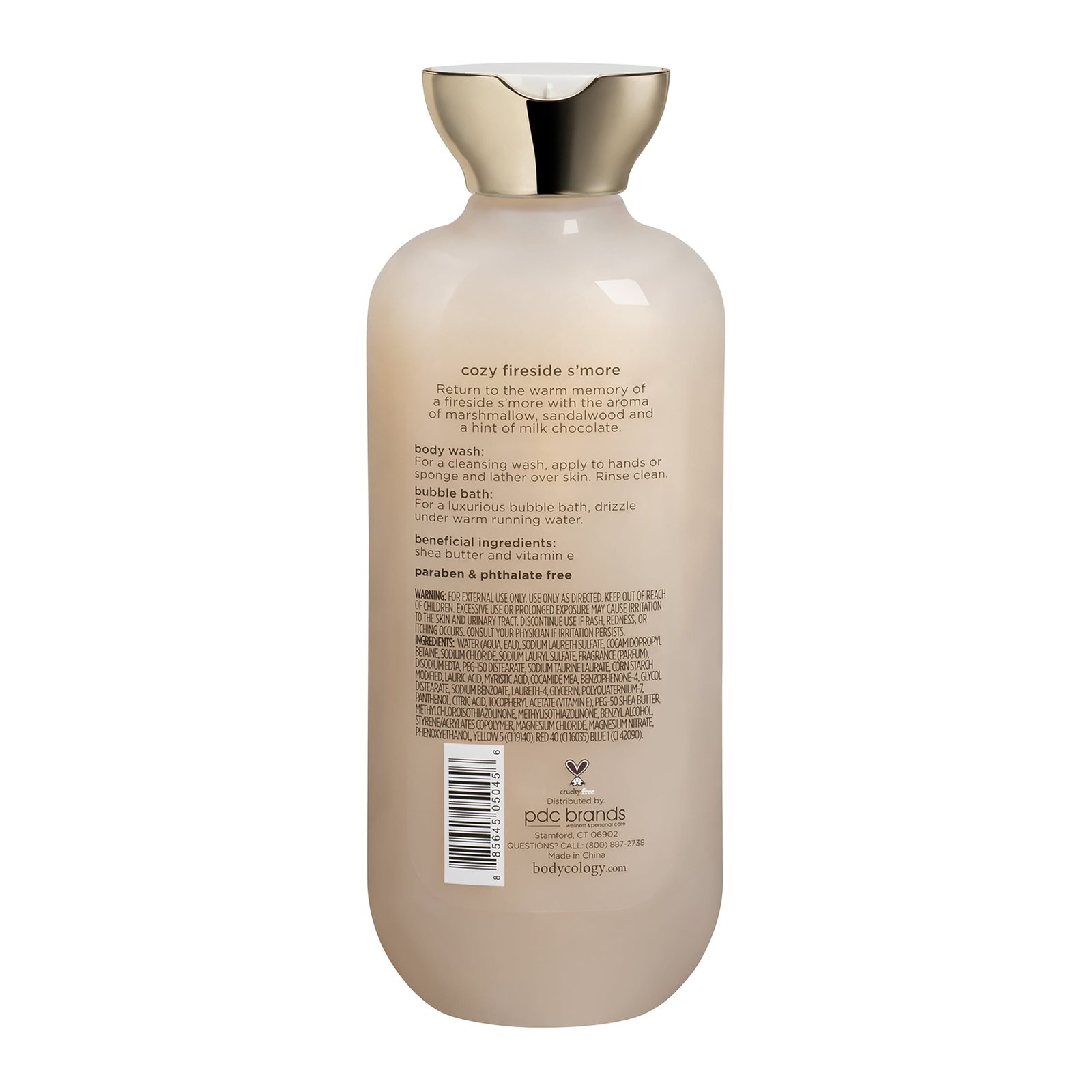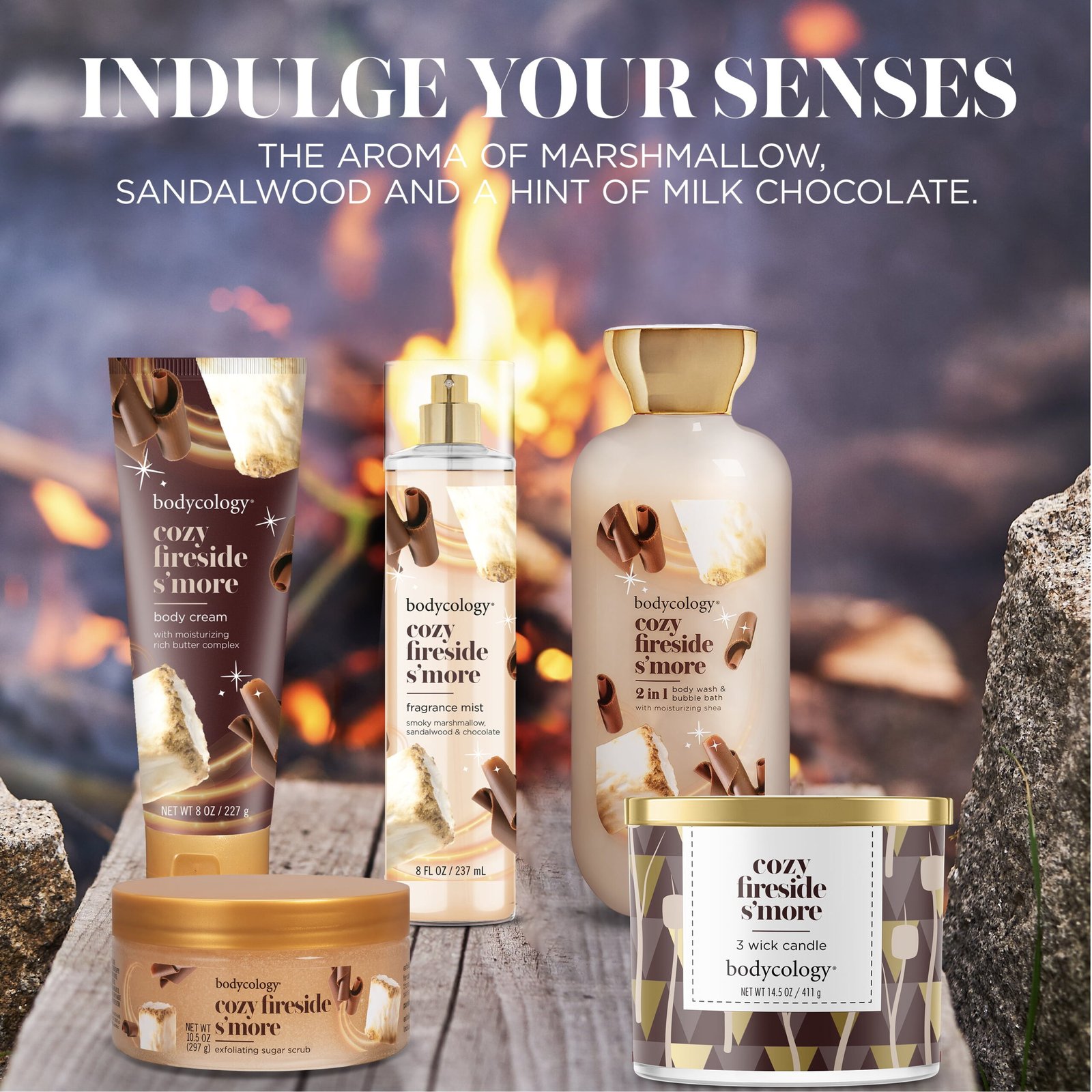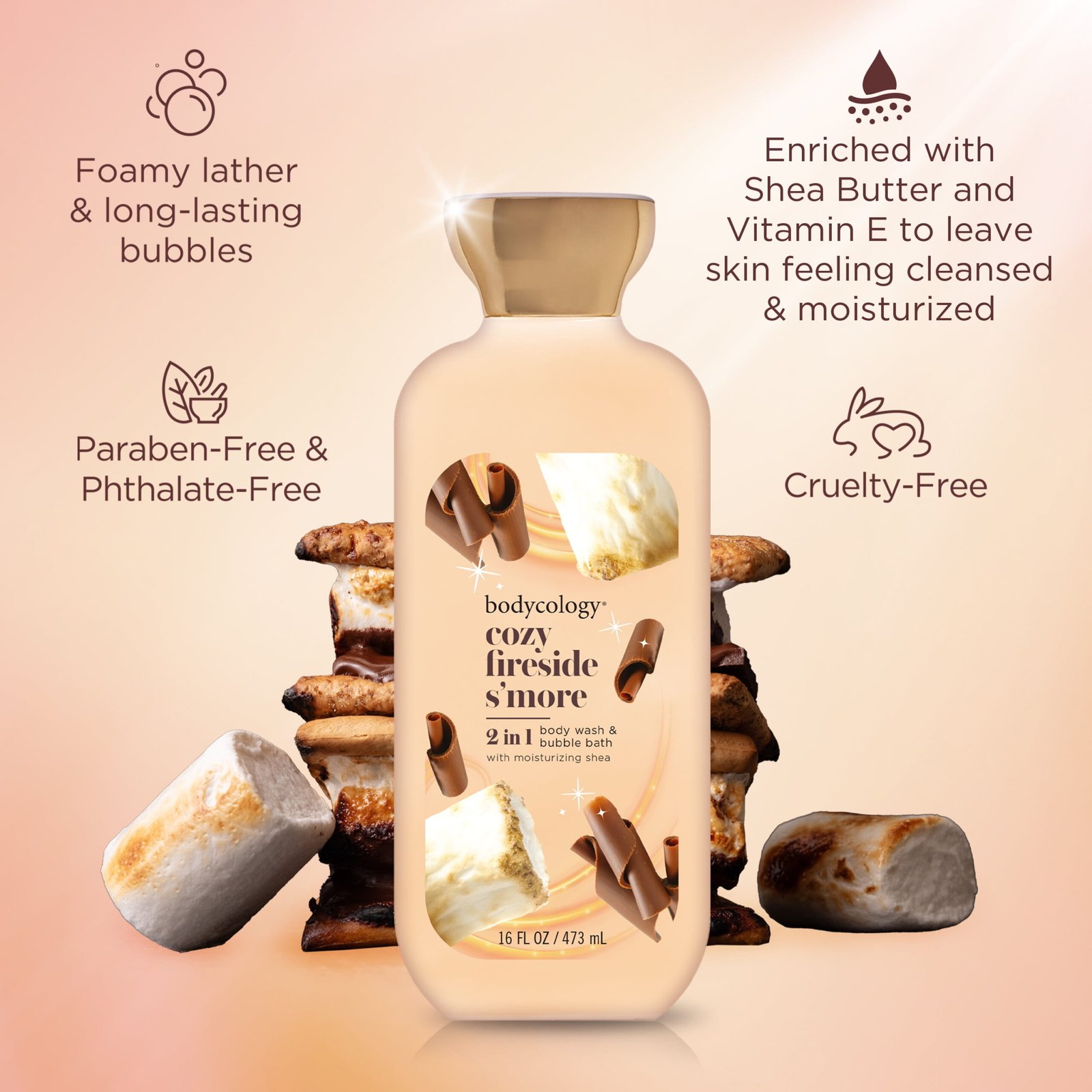 - WARM MEMORIES: Bodycology Cozy Fireside S’more 2 in 1 Body Wash & Bubble Bath cleanses while wrapping you in cozy comfort