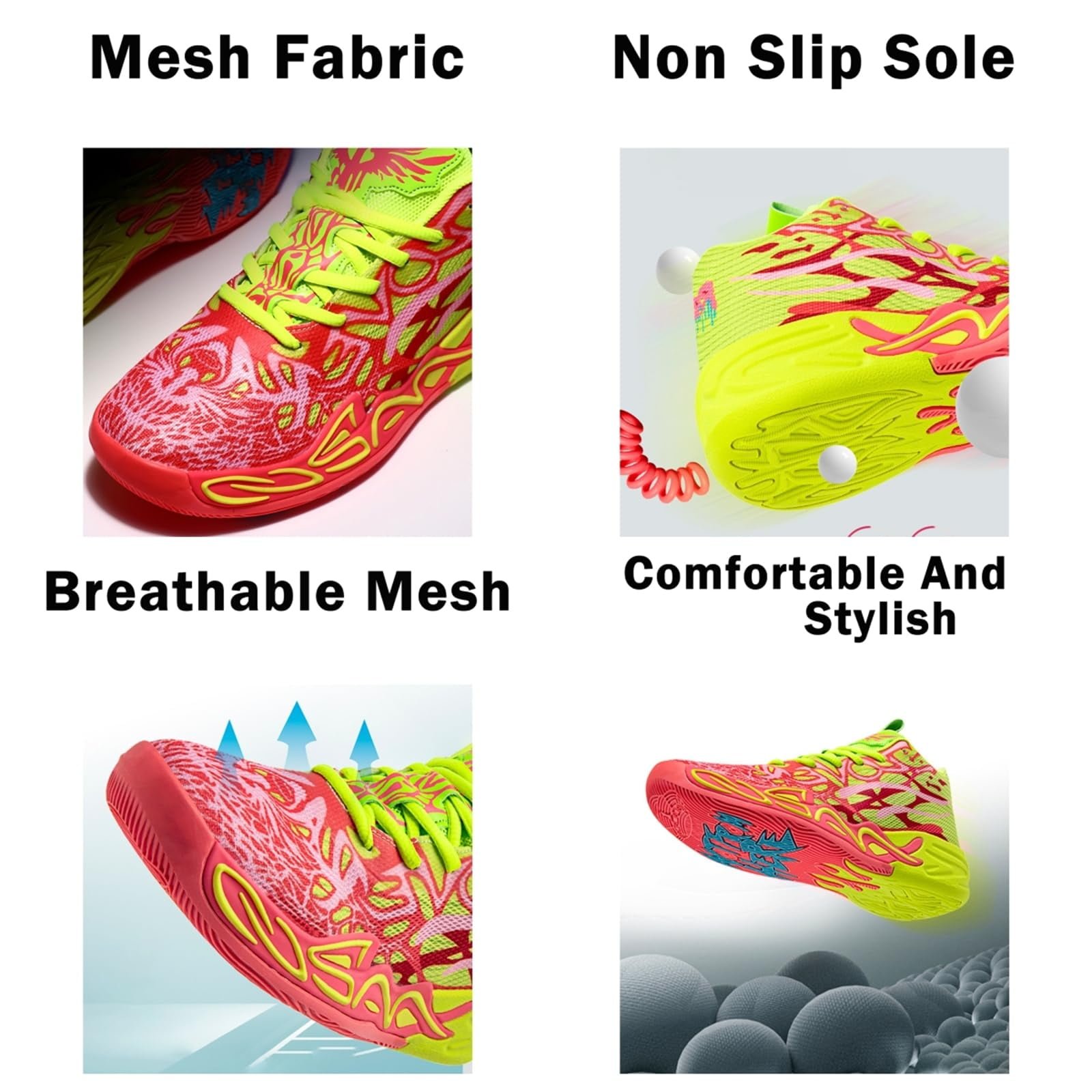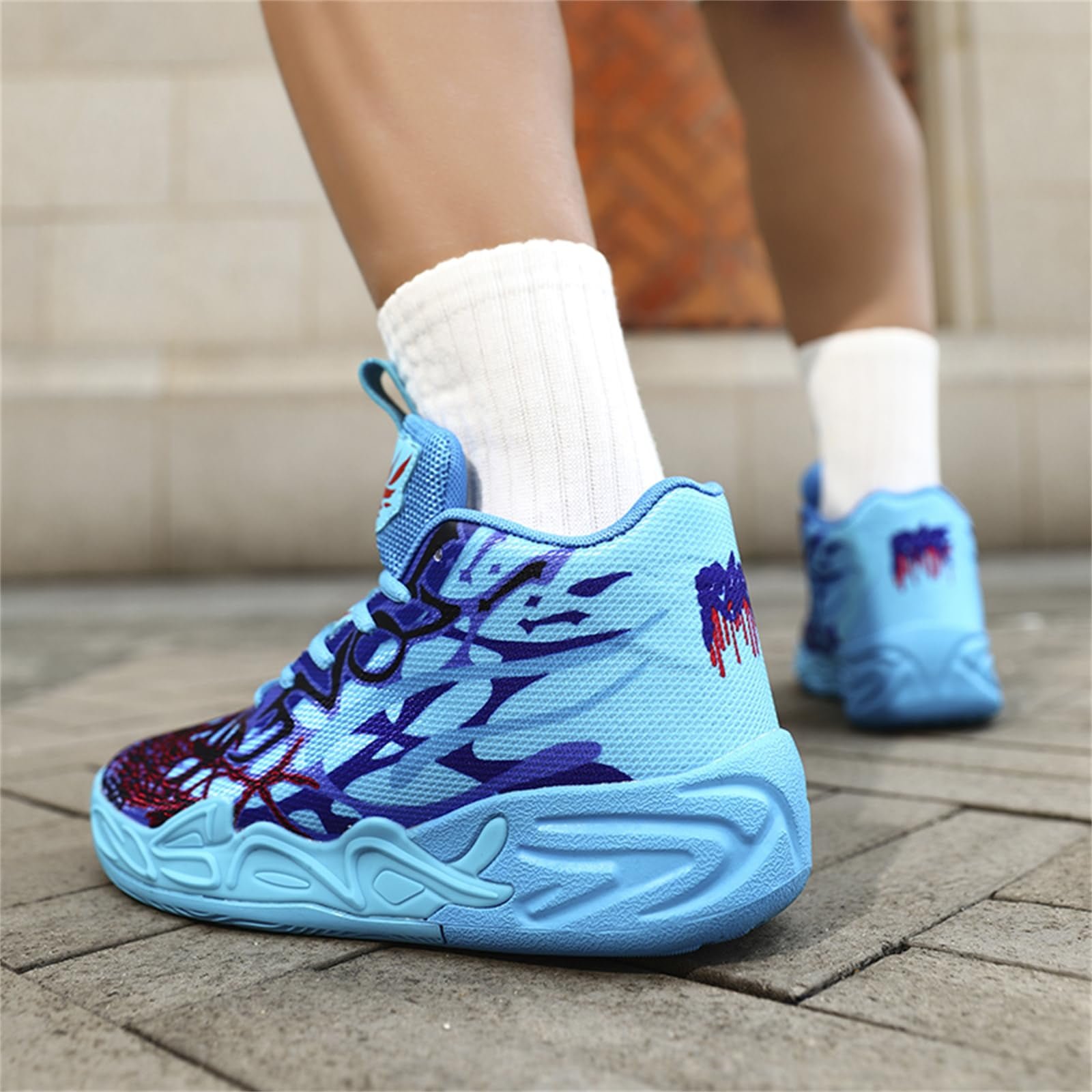 - High-Top Design with Secure Lace-Up Closure These basketball shoes feature a classic high-top silhouette with durable laces for adjustable ankle support. The snug fit helps stabilize movement during jumps and quick direction changes on campus courts or streets