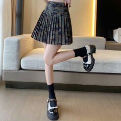 Camouflage All-Match Mid-Rise Pleated A-Line Skirt
