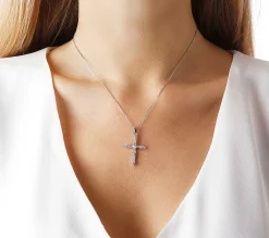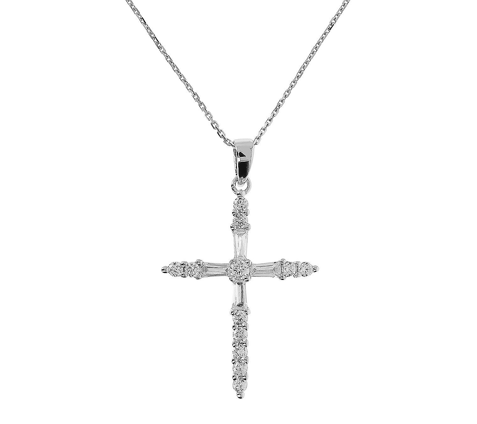 Diamonique Cross Pendant w/ Chain, Sterling Silver