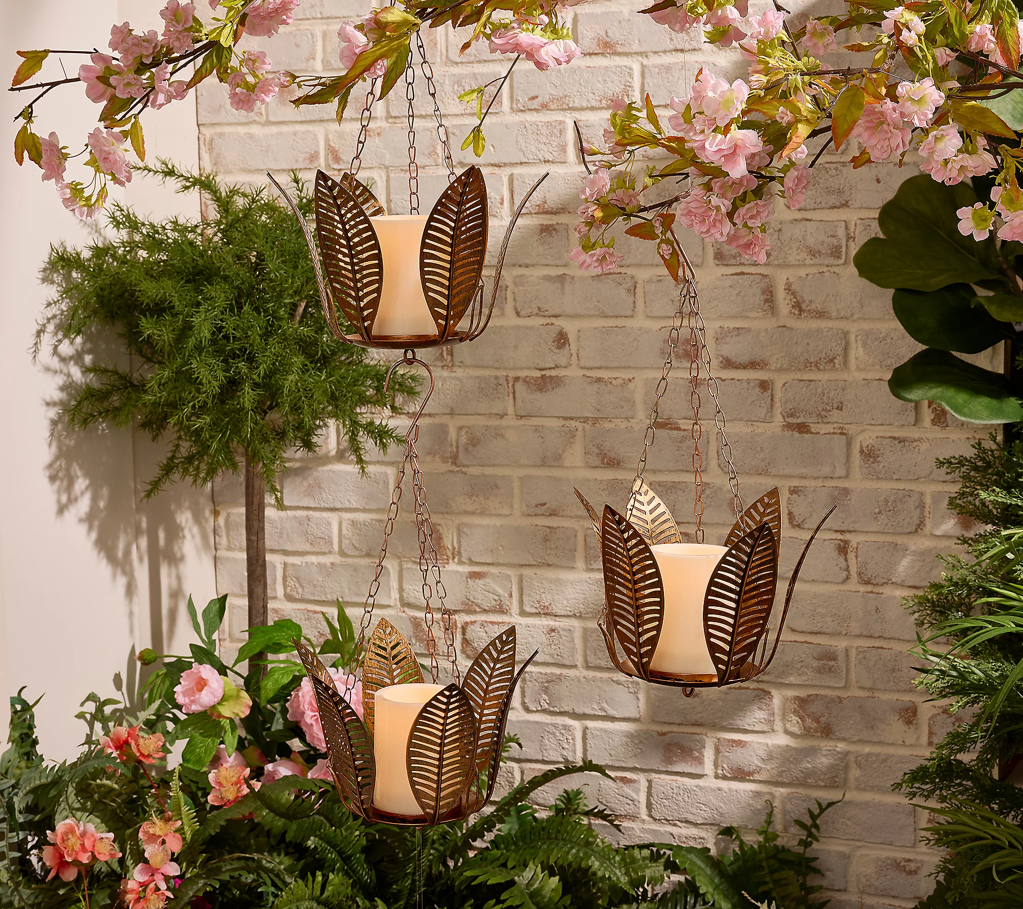 Garden Reflections Hanging Lotus Flowers with Outdoor Candles