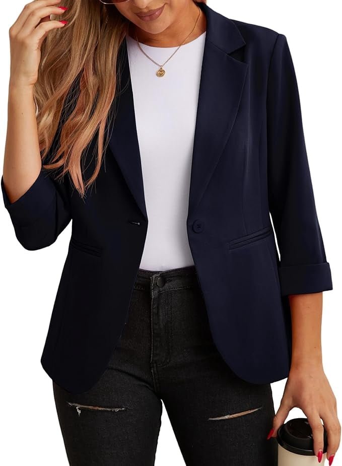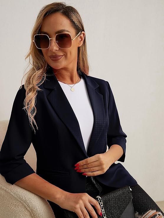 JWD Women’s Casual 3/4 Ruched Sleeve Blazer – Slim Fit Open Front Notched Lapel Work Office Suit Jacket with Pockets This open-front blazer is incredibly easy to style. Pair it with jeans and a T-shirt for a trendy street look, or match it with tailored trousers and heels for a professional business ensemble. It’s a must-have piece that transitions seamlessly from day to night. Whether you’re heading to the office, a business meeting, a casual outing, or a party, this blazer is your go-to choice. It is also an ideal gift for friends or family. Note: Machine washable (laundry bag recommended) or hand wash cold; do not bleach.