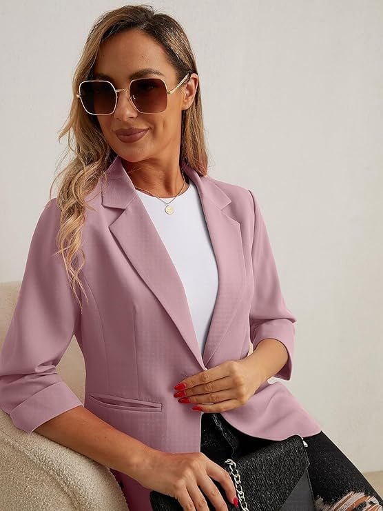 JWD Women’s Casual 3/4 Ruched Sleeve Blazer – Slim Fit Open Front Notched Lapel Work Office Suit Jacket with Pockets This open-front blazer is incredibly easy to style. Pair it with jeans and a T-shirt for a trendy street look, or match it with tailored trousers and heels for a professional business ensemble. It’s a must-have piece that transitions seamlessly from day to night. Whether you’re heading to the office, a business meeting, a casual outing, or a party, this blazer is your go-to choice. It is also an ideal gift for friends or family. Note: Machine washable (laundry bag recommended) or hand wash cold; do not bleach.