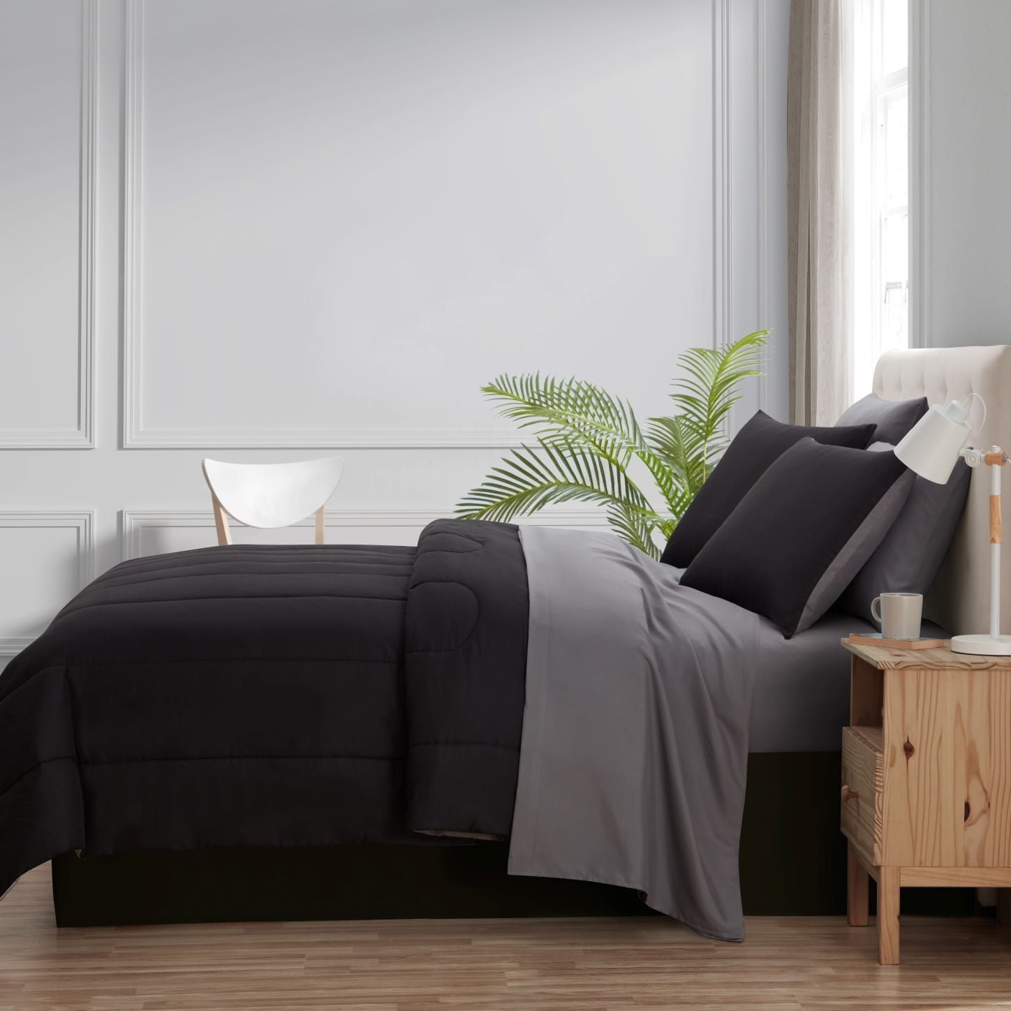 - Mainstays 7 Piece Reversible Bed in a Bag Comforter Set with Sheets, Black, Queen