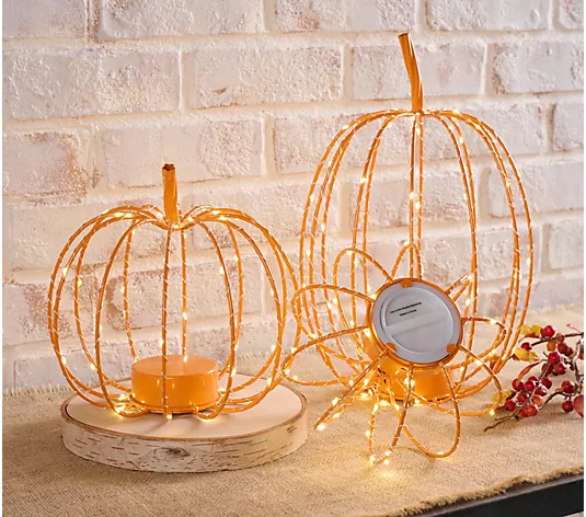 Martha Stewart Set of 3 Indoor/Outdoor Illuminated Wire Pumpkins