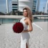 New Style White Ribbon Flower Halter Long High Sense Dress