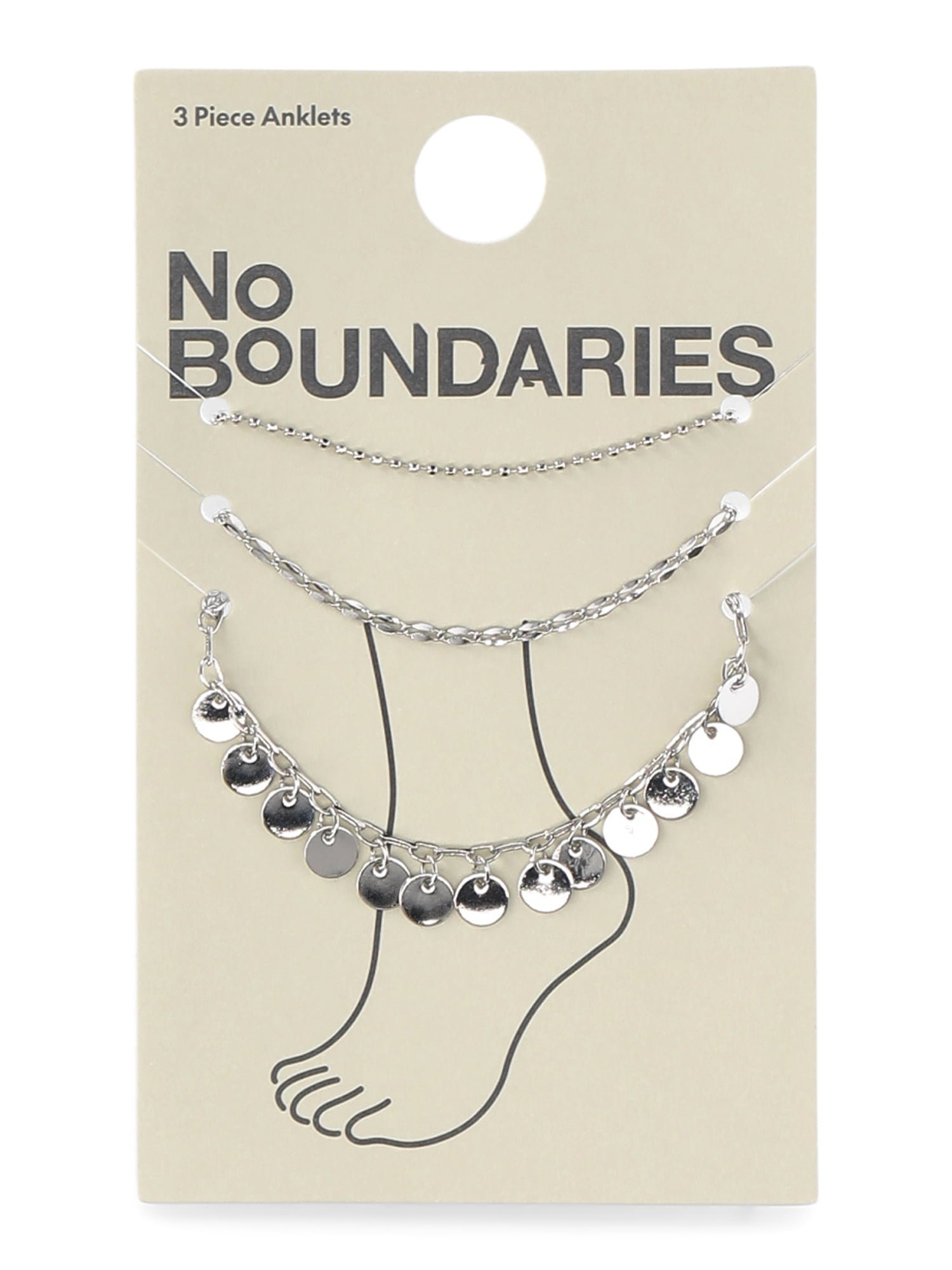 - 3-Piece Silvertone Anklet Set for Teen Girls and Women from No Boundaries