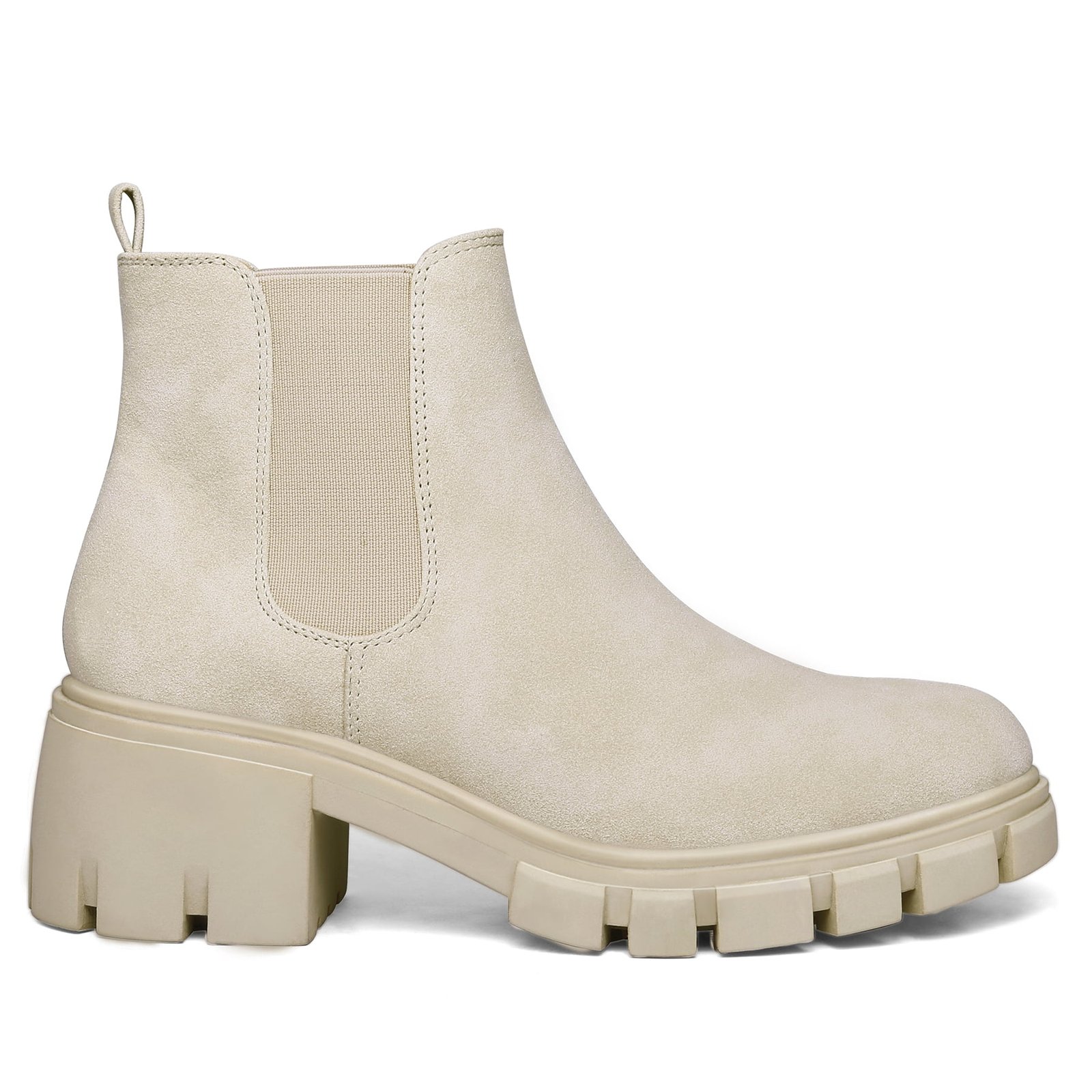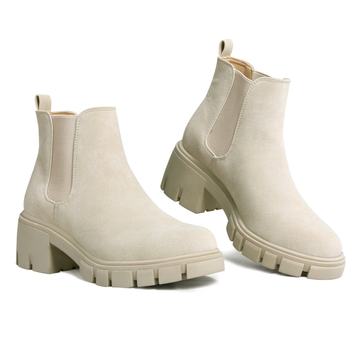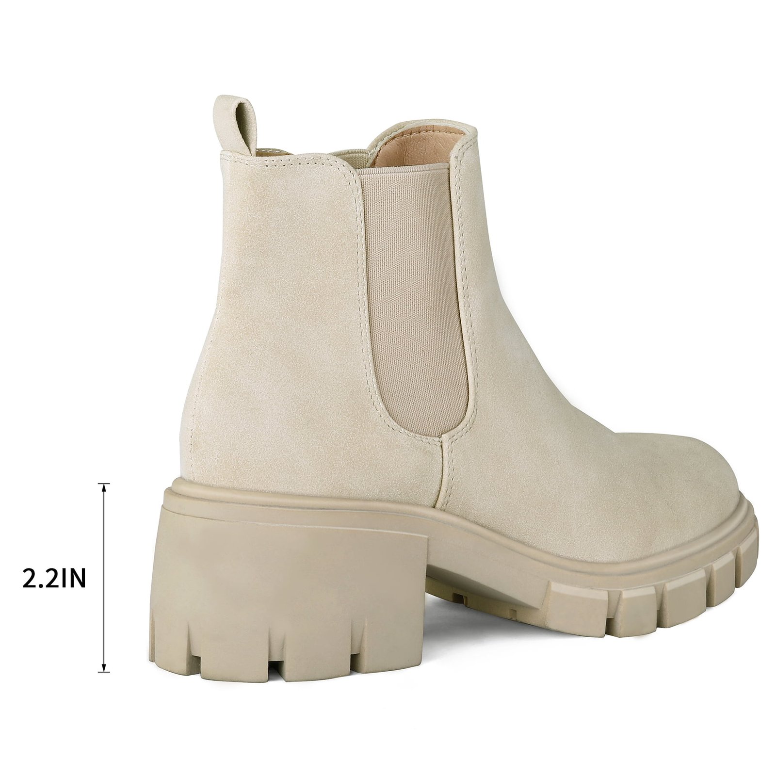 Step out in style and comfort with these Pennysue Women’s Platform Chelsea Booties in a versatile nude (beige) color, size 6.5. These ankle boots feature a fashionable round toe design and an elastic ankle for a better, easy-to-wear slip-on fit. Crafted with a durable PU upper and a non-slip rubber outsole, they offer both style and practicality. The chunky 2-inch low heel and thick platform not only provide adequate support but also visually enhance your figure, making these vintage-inspired boots a charming addition to your autumn and winter wardrobe. They are also easy to clean and care for, ensuring lasting appeal.