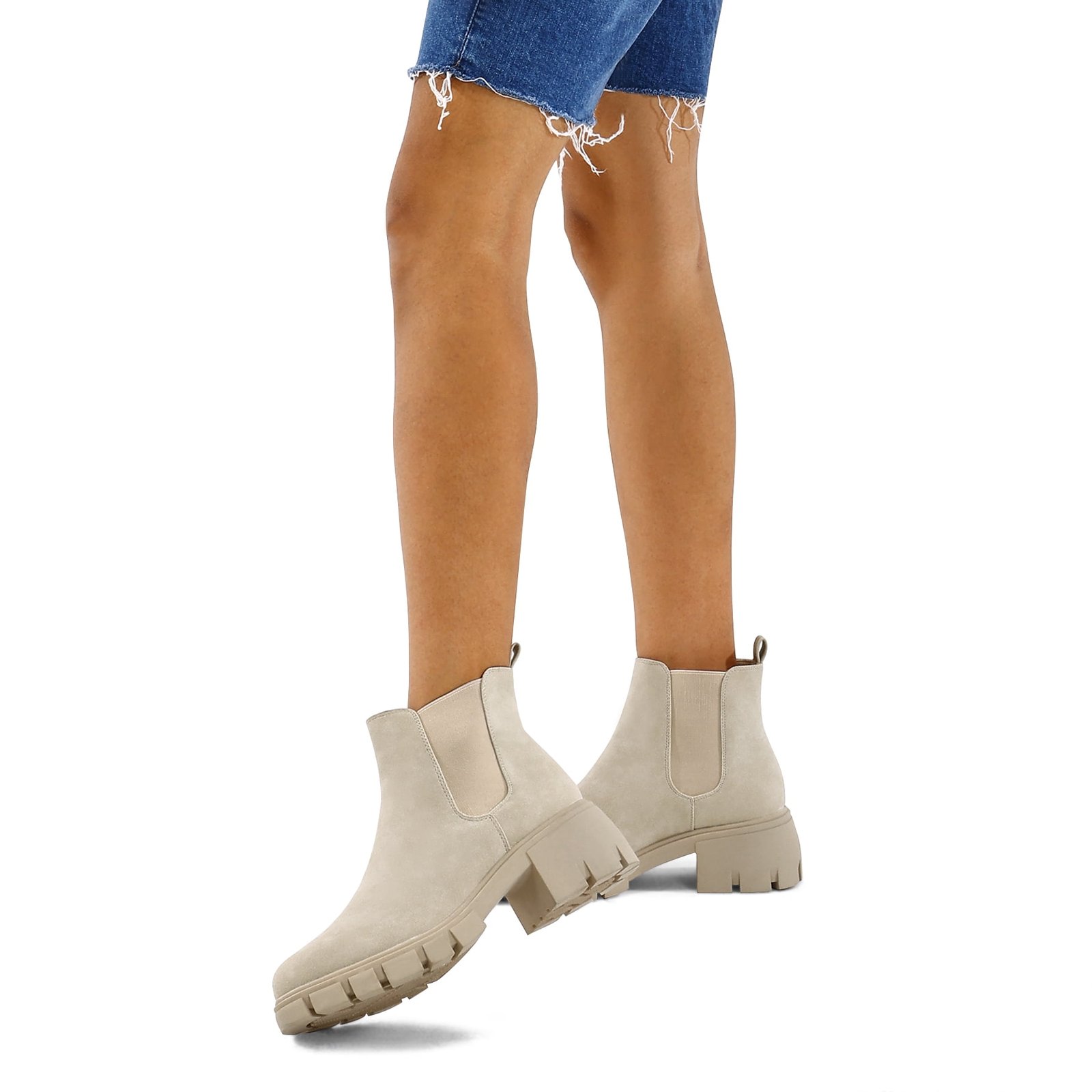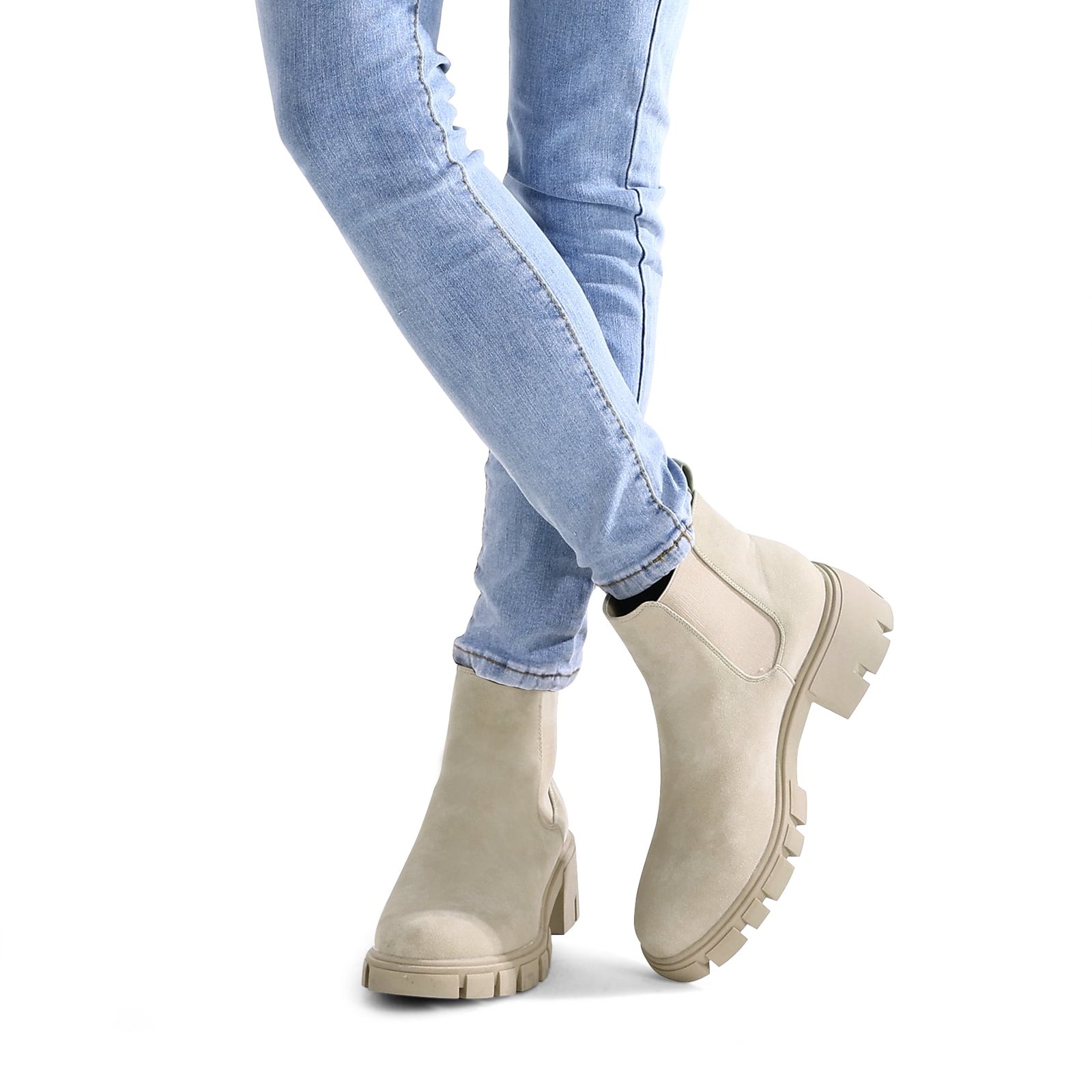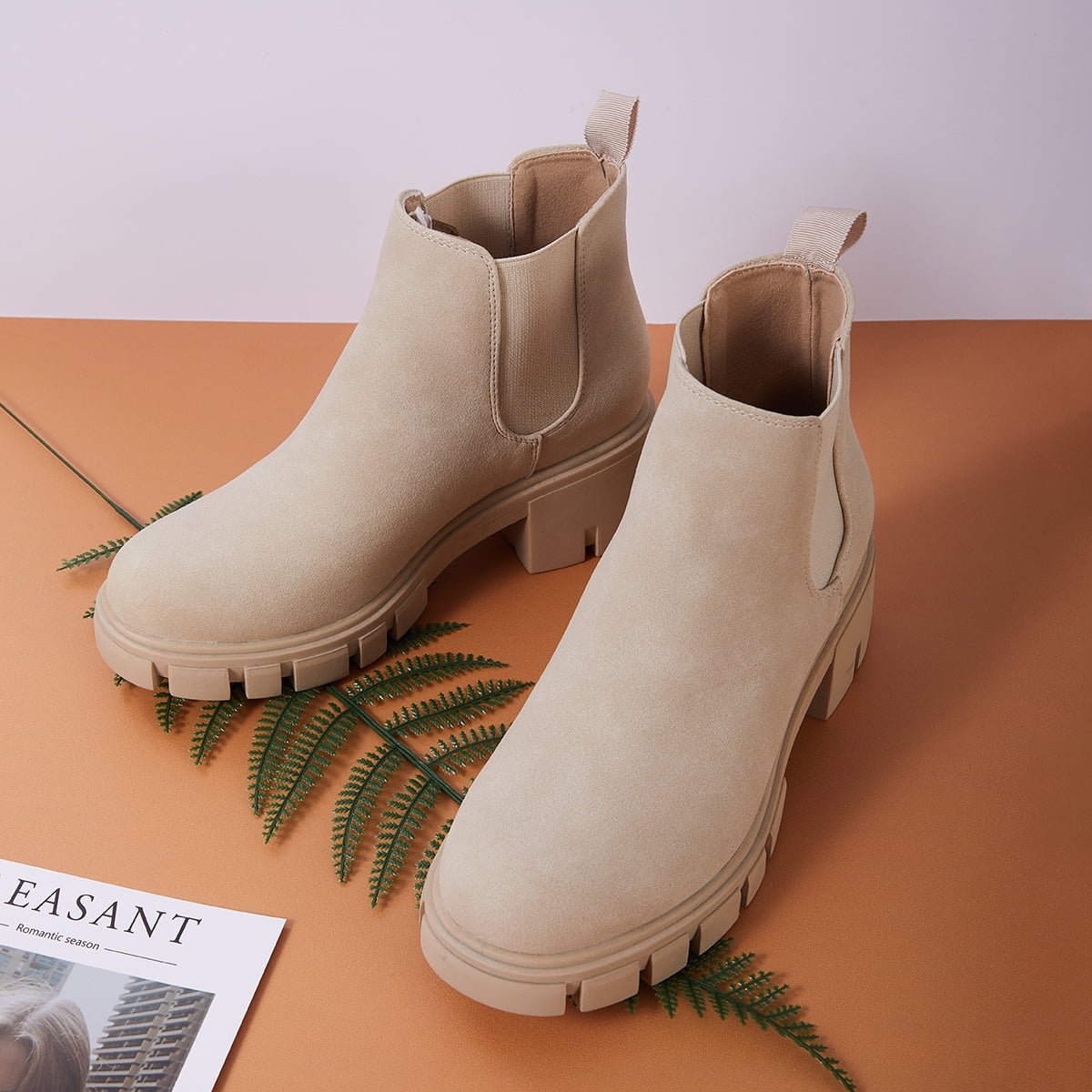 Step out in style and comfort with these Pennysue Women’s Platform Chelsea Booties in a versatile nude (beige) color, size 6.5. These ankle boots feature a fashionable round toe design and an elastic ankle for a better, easy-to-wear slip-on fit. Crafted with a durable PU upper and a non-slip rubber outsole, they offer both style and practicality. The chunky 2-inch low heel and thick platform not only provide adequate support but also visually enhance your figure, making these vintage-inspired boots a charming addition to your autumn and winter wardrobe. They are also easy to clean and care for, ensuring lasting appeal.