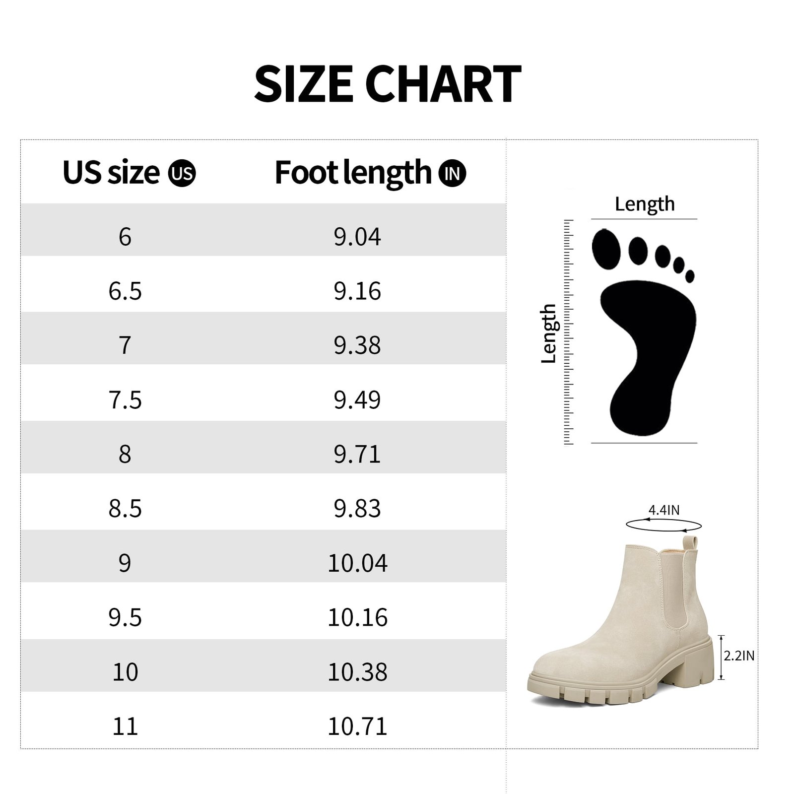 - The ankle-high shaft measures 4 inches, providing a classic Chelsea boot silhouette.