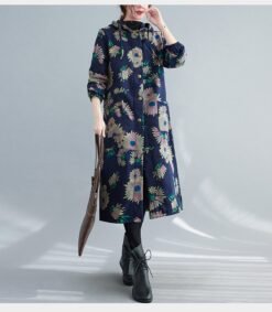 Retro Artistic Winter Long Cotton Coat With Fleece Lining