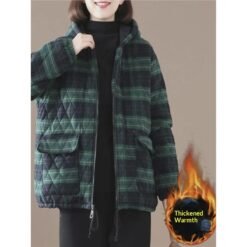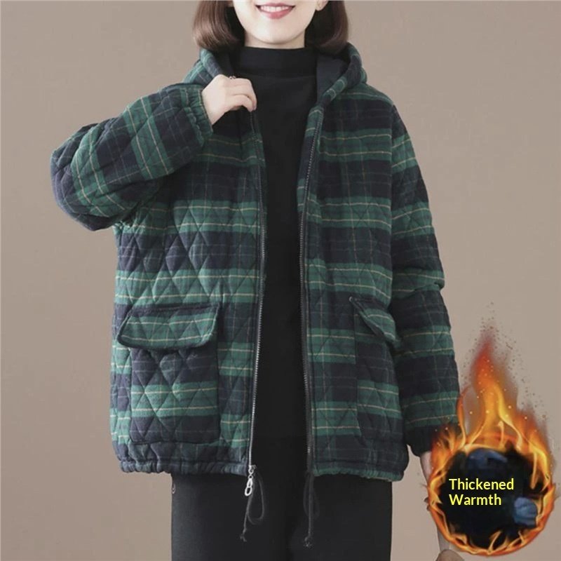 Short Cotton-padded Coat In Plaid For Fall And Winter