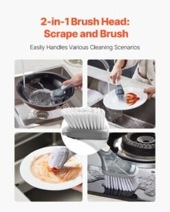 Soap Dispensing Dish Brush, Kitchen Scrub Brushes With 3 Brush Heads, Dish Cleaning Brushes With PP Handle And Curved Bristles, Ideal For Pots, Pans, Sink And Stove