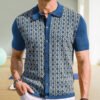 Summer Tencel Short-sleeved Sweater Lapel Jacquard Cardigan For Men