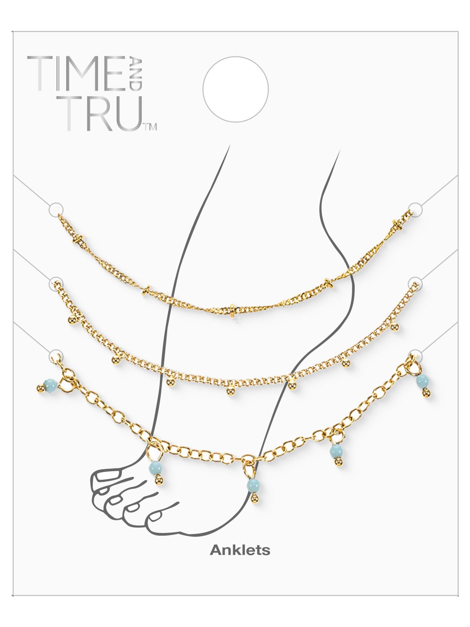 You’ll love these on-trend anklets by Time and Tru. Layered together or worn alone, they’re fun, trend-setting pieces you’ll wear day in and day out, no matter the season.
