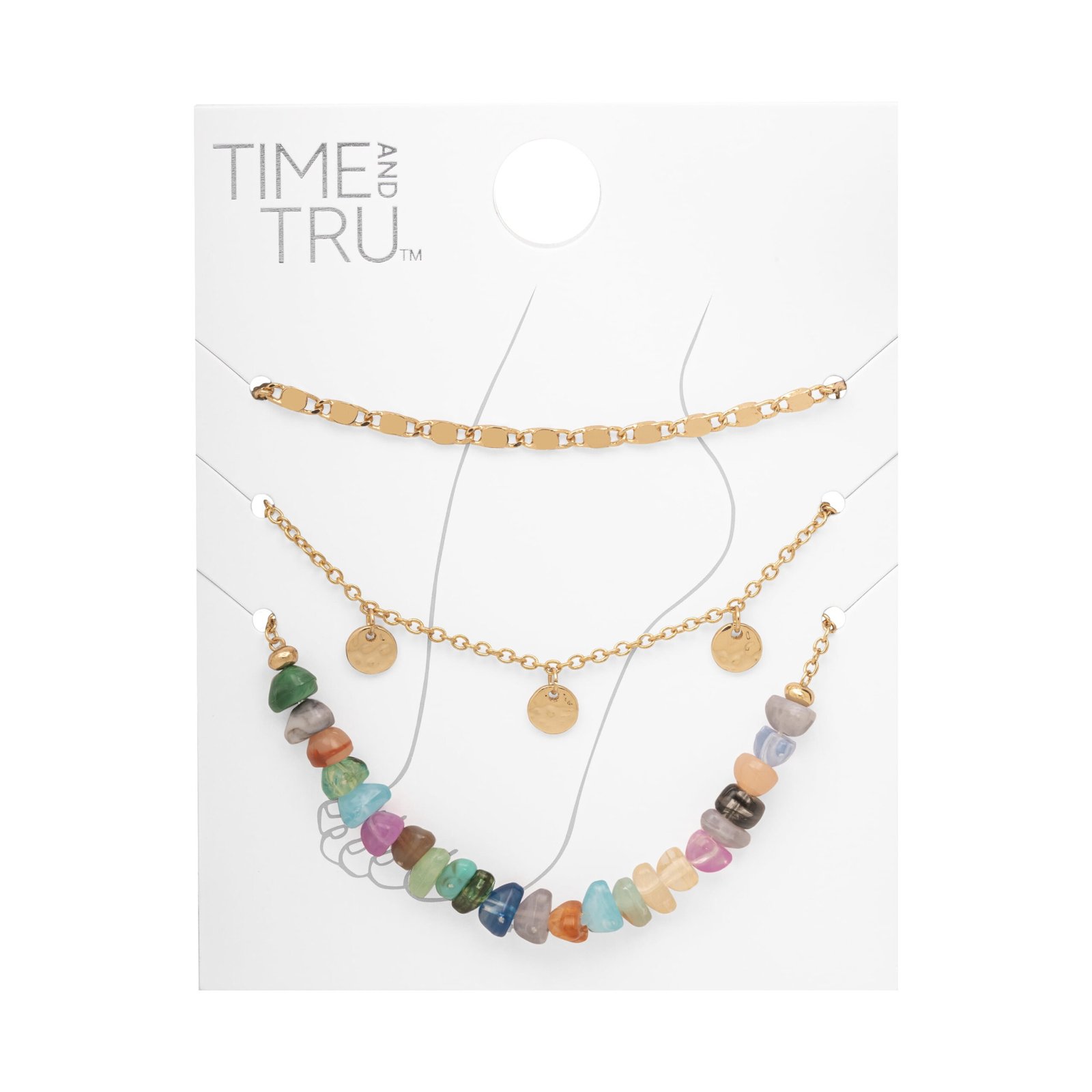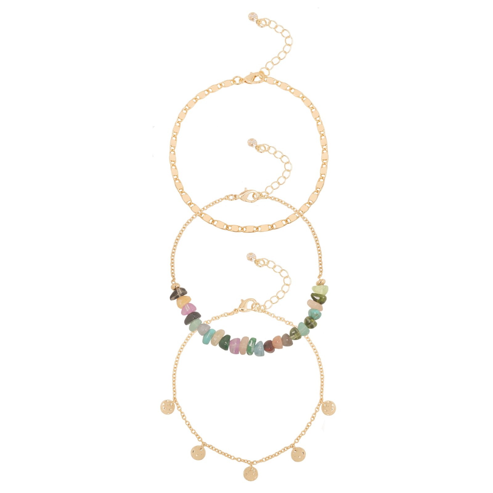 Time and Tru Women’s Beaded Anklet Set with Disc Drops, 3-Pack Fashion Jewelry