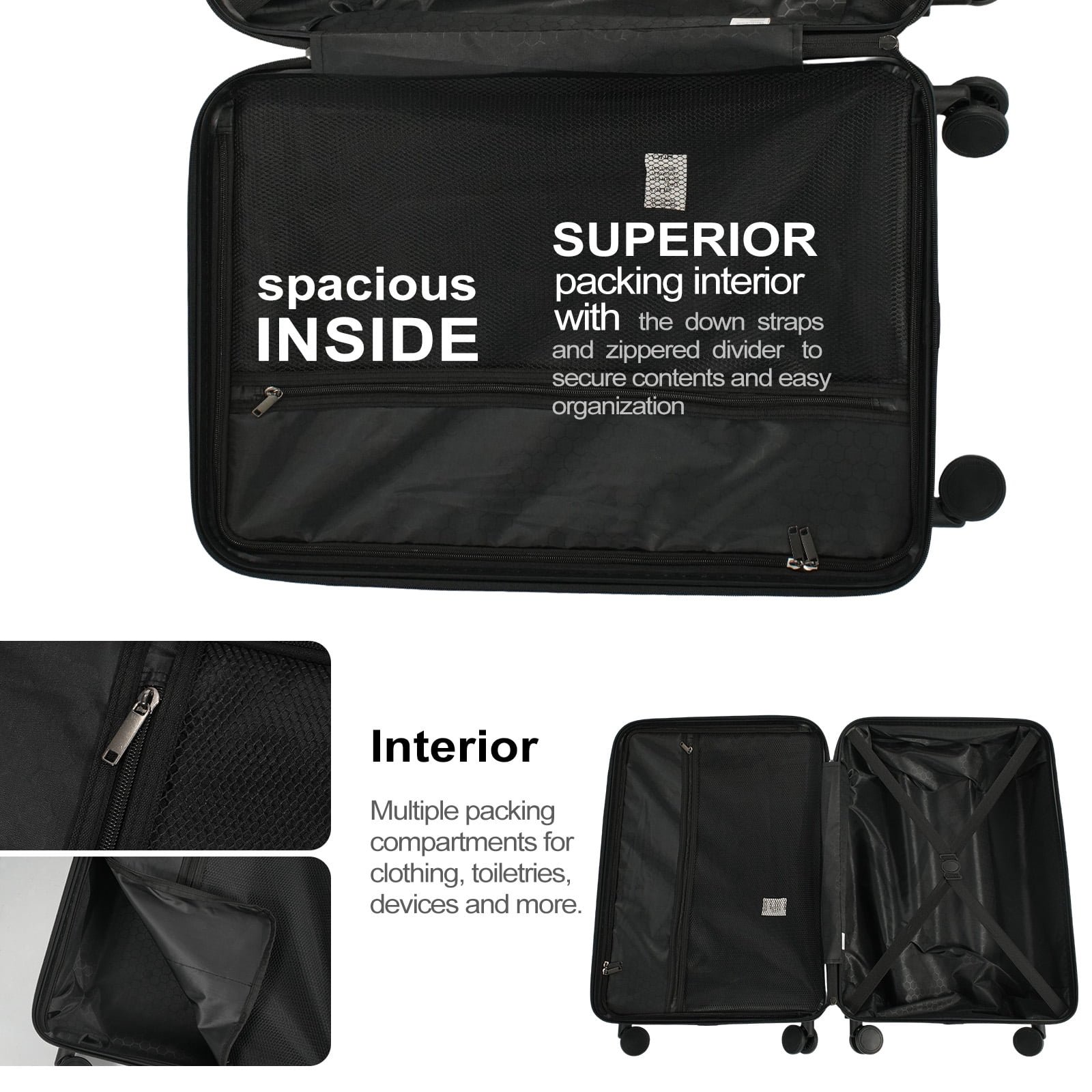 - 【Organized & Secure Interior】Interior mesh zip pocket and elasticated,Squared full-capacity design, Capacity : 20in38L 24in63L 28in 93L