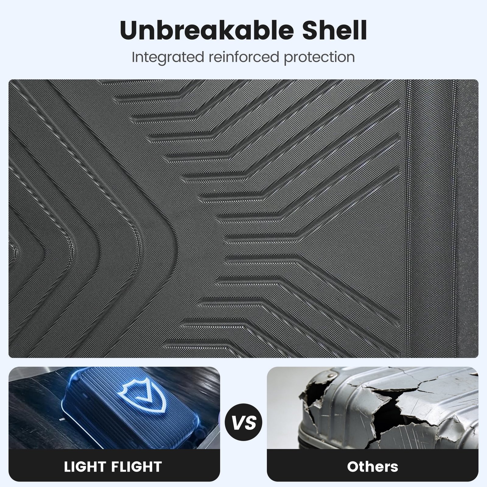 100% PC+ABS hardshell materials, lightweight, durable luggage