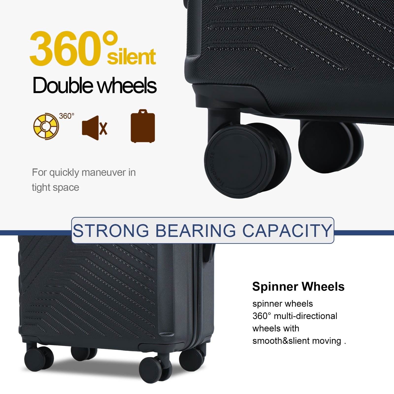 - 【Top material for every part】8x Silent & Smooth Multi-directional Spinner Wheels Can accept a height of 1 meter and a weight of 40kg without breakage;TPR soft handle with straight handle makes you more comfortable when you need to carry; Aluminum pull rod can be adjusted for three lengths.