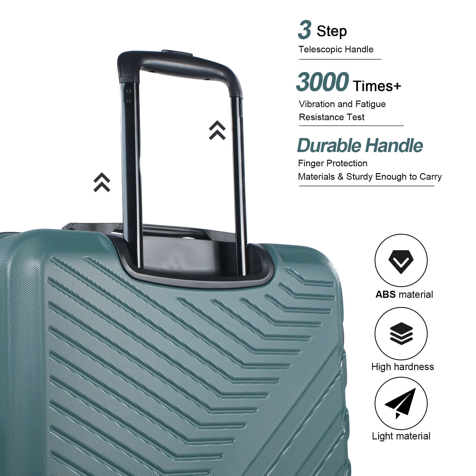 3-Step Telescoping Handle; 4 Quiet Spinner Wheels; TSA Combination Lock