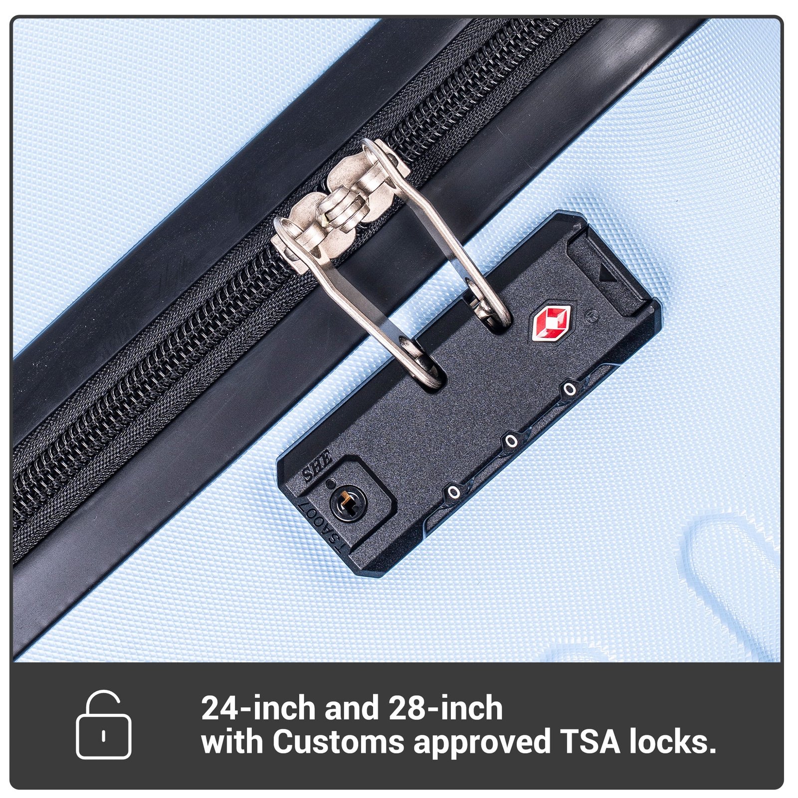 • 【High Quality Luggage Set】Made of 100% PC+ABS material,this texture is extremely impact-resistant,scratch-resistant,and fairly light in weight. Best choice for long-term travels and business trips.