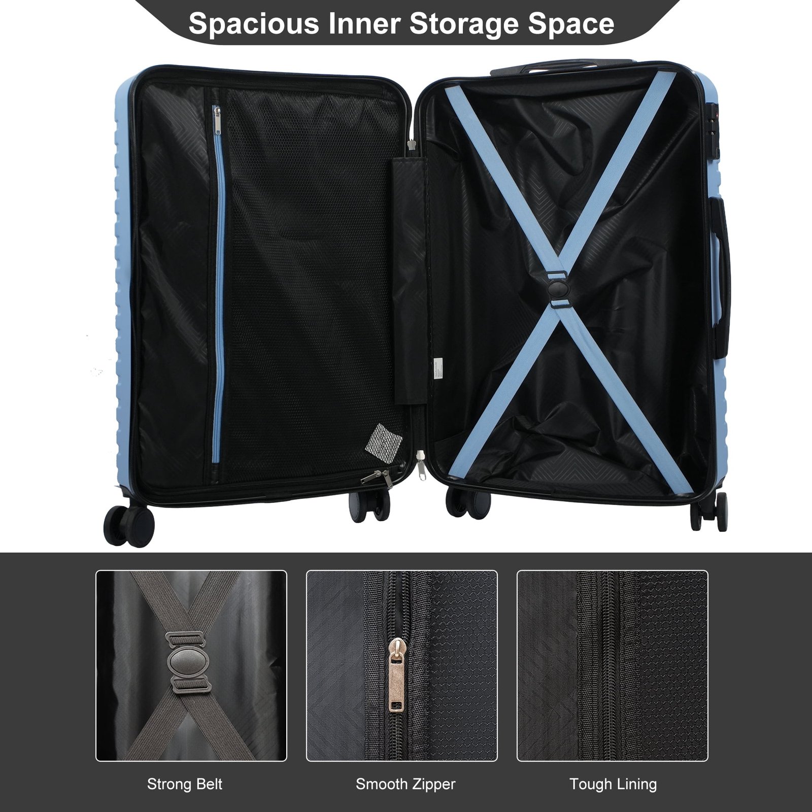 This is Luggage set , Using new super thick PC+ABS material to make the hard shell, which makes the luggage more durable, lighter and more impact resistant. Textured finish to prevent scratches and keep it beautiful after travel. unique style, wear and scratch resistance, front design with a beautiful diamond pattern of horizontal stripes, not only adds style to the hardshell luggage, but also enhances the strength and achieves overall durability.