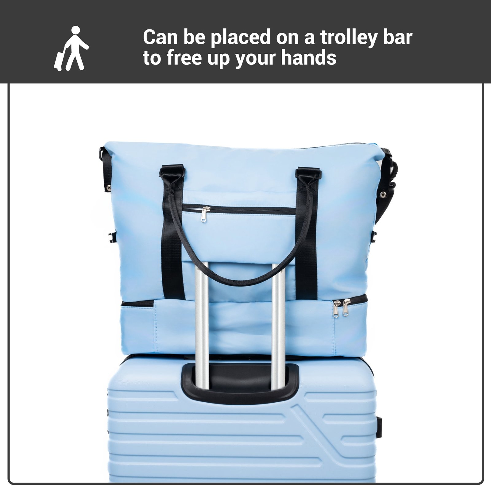Travelhouse 5-Piece Hardside Luggage Set Spinner Lightweight Suitcase with TSA Lock & Duffel Bag,Light Blue