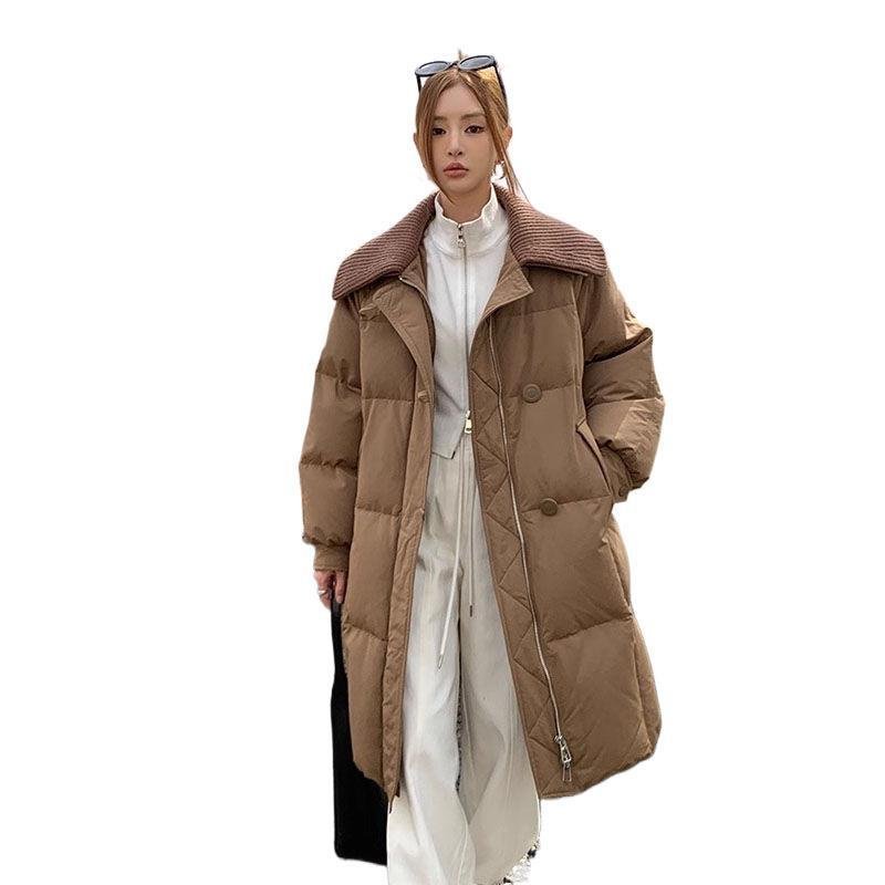 Womens Fashionable Knitted Long Cotton Coat With A Turn-Down Collar